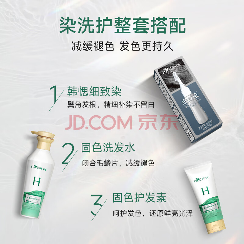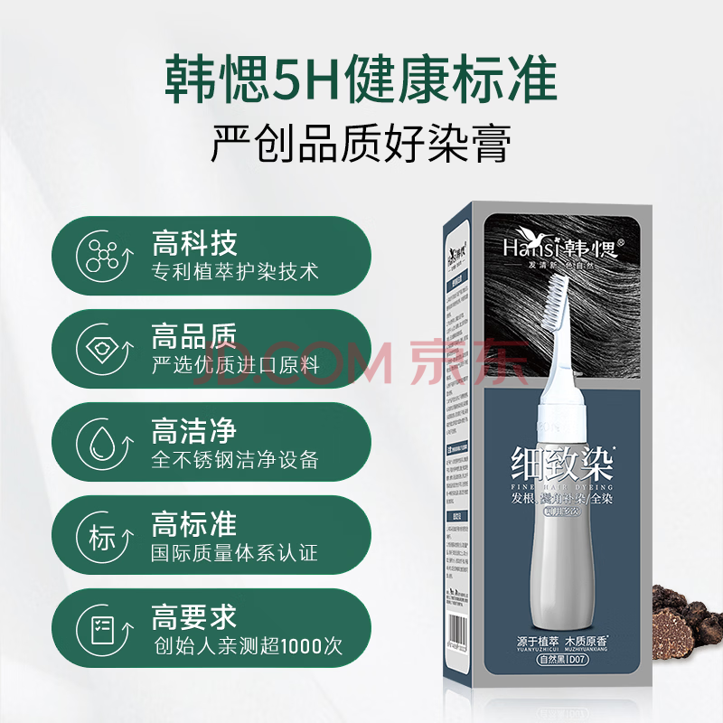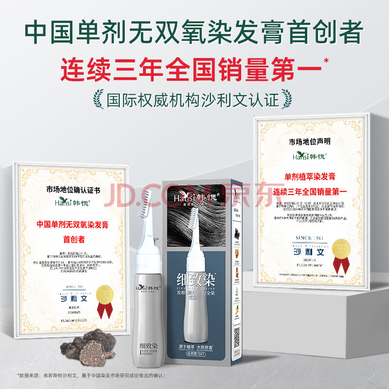 商品相册:韩愢细致染染发膏自然黑天然植物染发剂 男女无刺激遮盖白发不沾头皮第