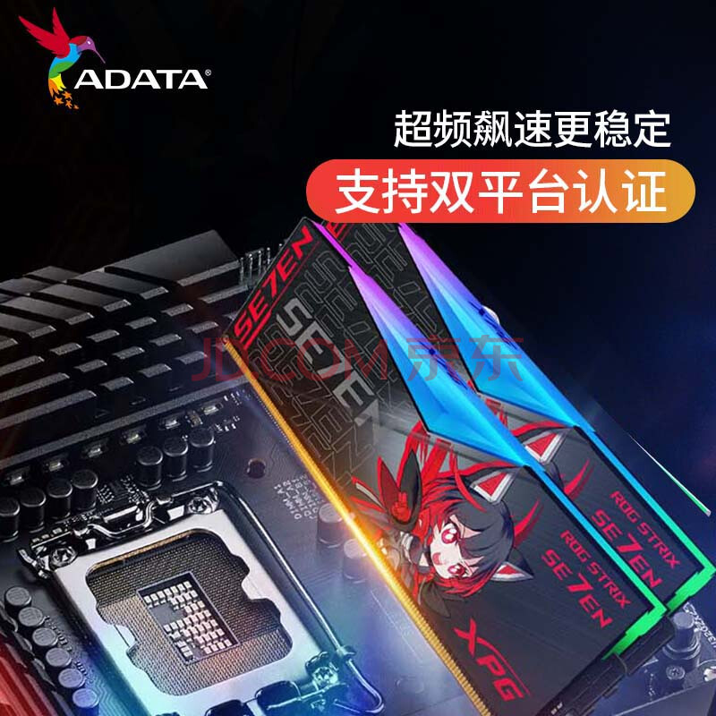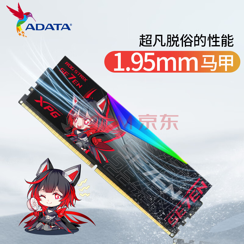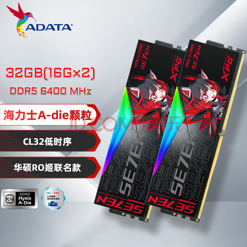 商品相册:威刚32GB(16GX2)套装 DDR5 6400 台式机内存条海力士A die颗粒-华硕RO姬联名RGB灯条CL32第