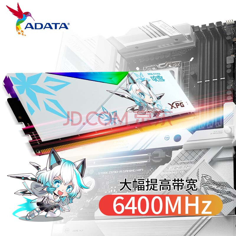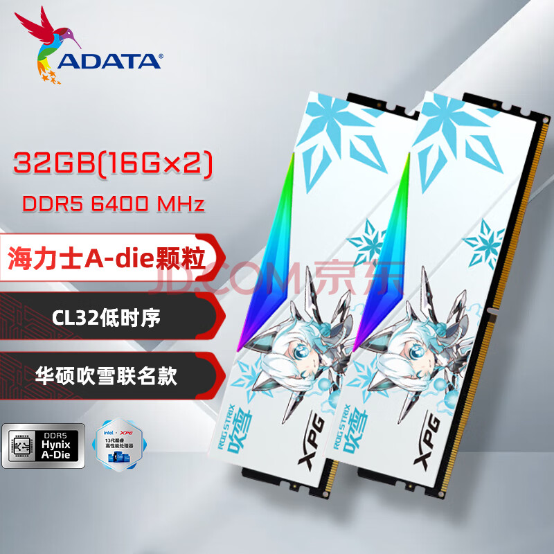 商品相册:威刚32GB(16GX2)套装 DDR5 6400 台式机内存条海力士A die颗粒-华硕吹雪联名RGB灯条CL32第1张/共6