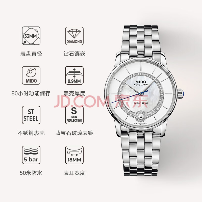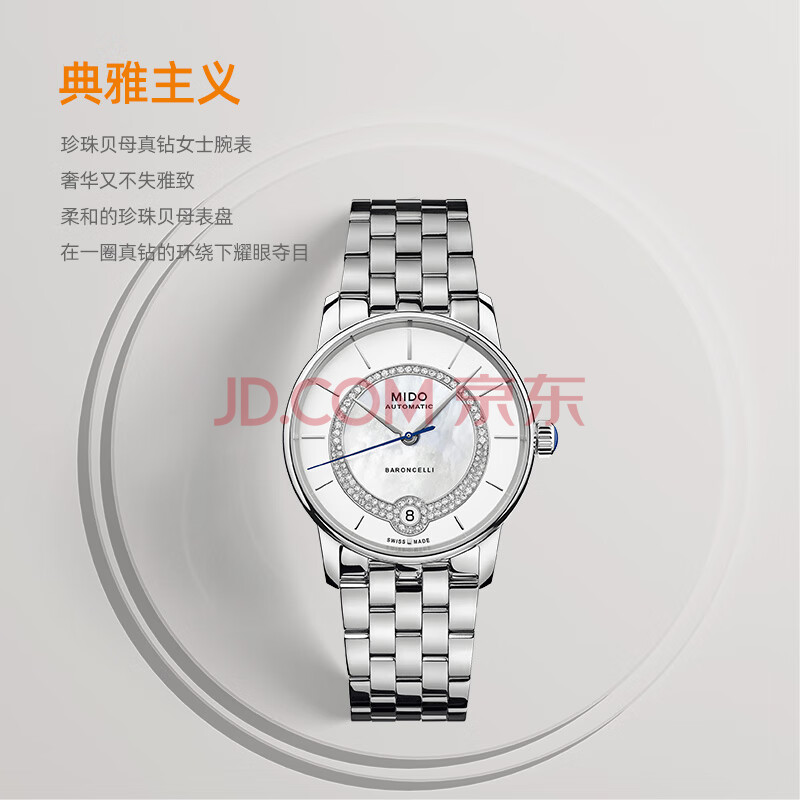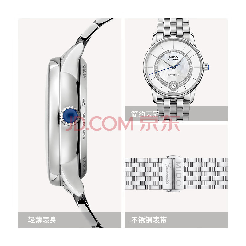 商品相册:美度(MIDO)瑞士手表 贝伦赛丽系列 华彩款 真钻 时尚优雅 机械钢带女表第