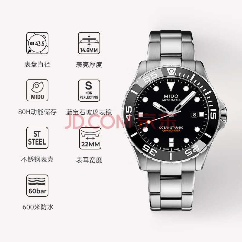 商品相册:美度(MIDO)瑞士手表 领航者系列 天文台硅油丝 潜水运动 自动机械钢带男表第