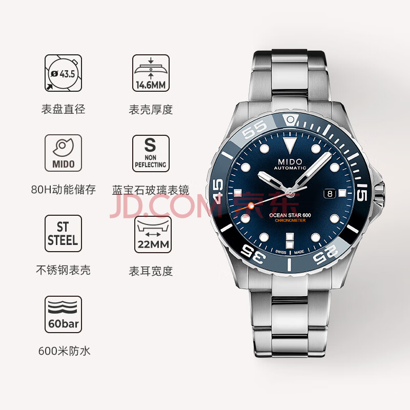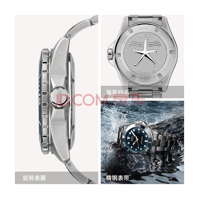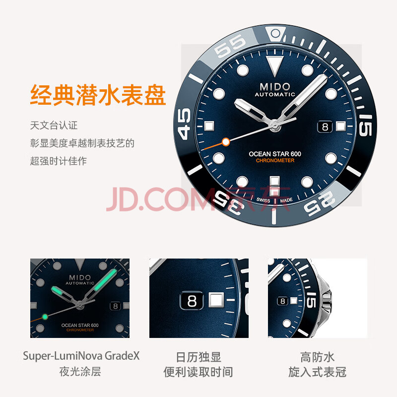 商品相册:美度(MIDO)瑞士手表 领航者系列 天文台硅油丝 潜水运动 机械钢带男表第