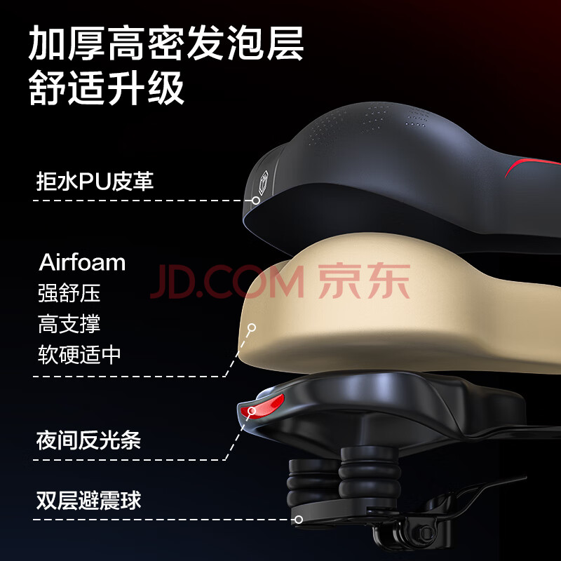 商品相册:京东京造 自行车坐垫 山地车公路车软加厚骑行坐垫加大减震舒适简易安装第
