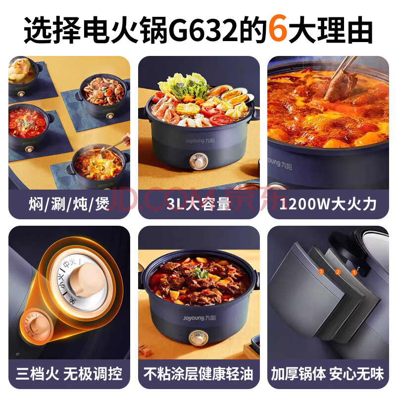 商品相册:九阳(Joyoung)电火锅家用多功能电煮锅电热锅HG30-G632第