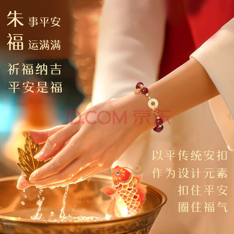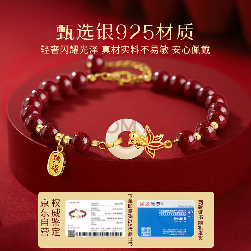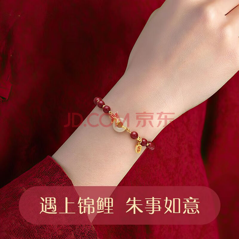 商品相册:珍尚银中国黄金朱砂手串锦鲤和田玉银手链女生日母亲节礼物送女朋友妈妈第1张/共8