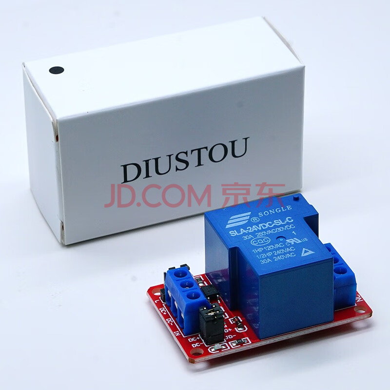 商品相册:丢石头 带光耦继电器模块 1路继电器 24V工作电压 耐流30A 触发电平高低可调 第