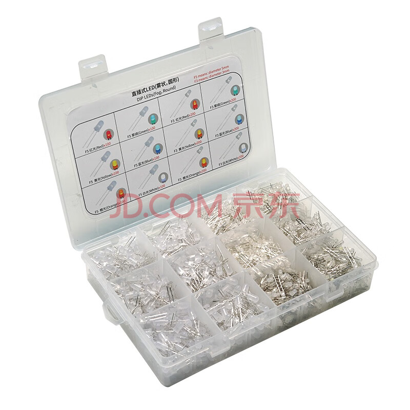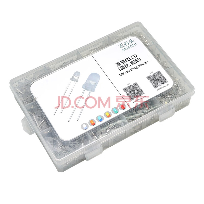 商品相册:丢石头 网络配件 发光二极管套件 3MM+5MM直径 12种型号 共1800只 雾状直插LED灯 第