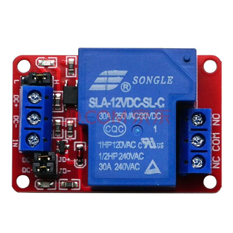商品相册:丢石头 带光耦继电器模块 1路继电器 12V工作电压 耐流30A 触发电平高低可调 第