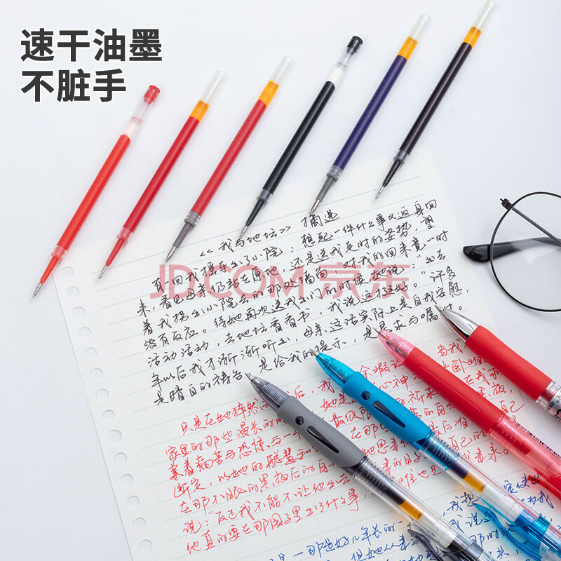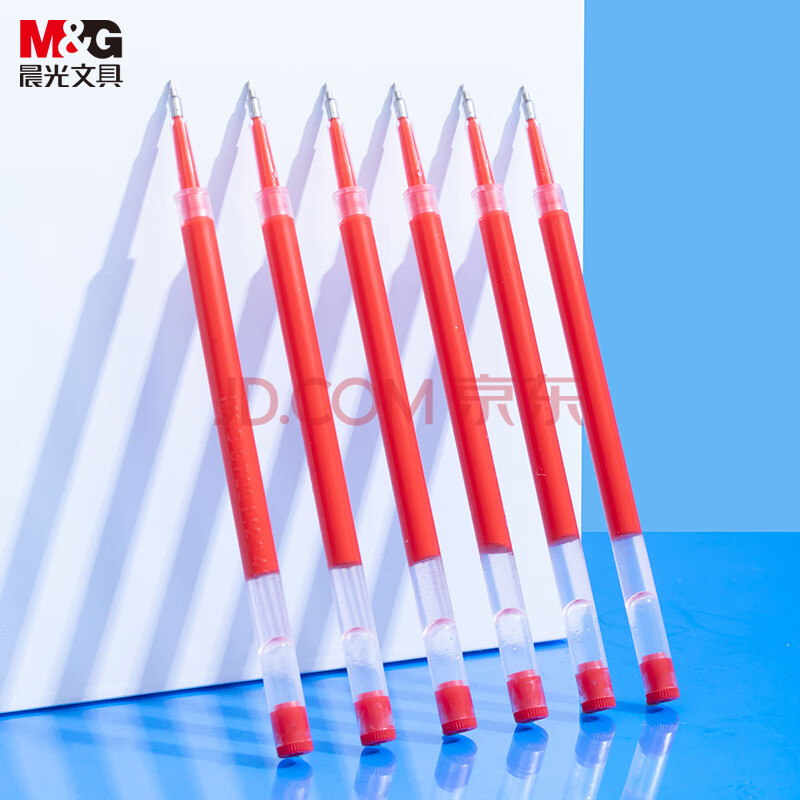 商品相册:晨光(M&G)文具G-5按动中性笔芯0.5替芯签字笔芯学生速干ST头水笔芯办公用品1008/K35/S01适用 红色10支/盒第