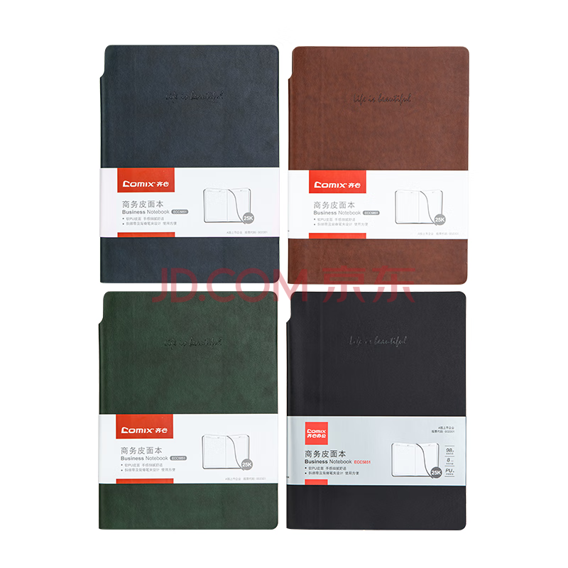 商品相册:齐心(COMIX)笔记本子A5/98张4本 文具软皮面会议记录本创意斜绑带/记事本/日记本 ECC5851-4第