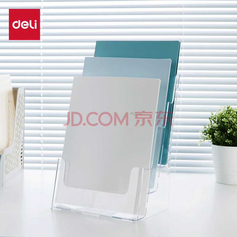 商品相册:得力(deli)【超级爆款】得力(deli)3层A4 PS材质桌面资料展示架 挂墙宣传单杂志架 目录宣传架 9318第
