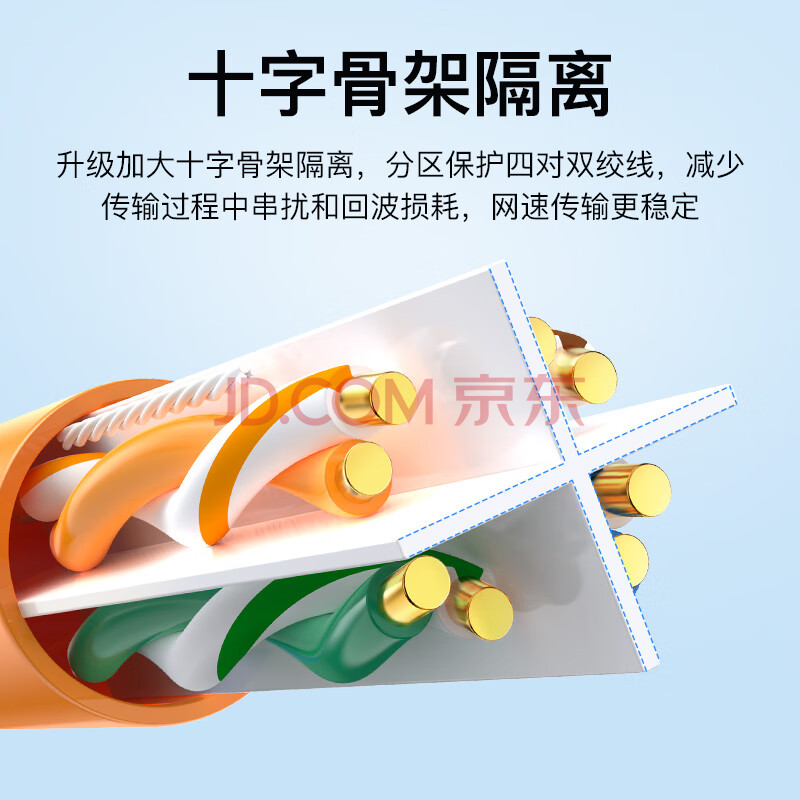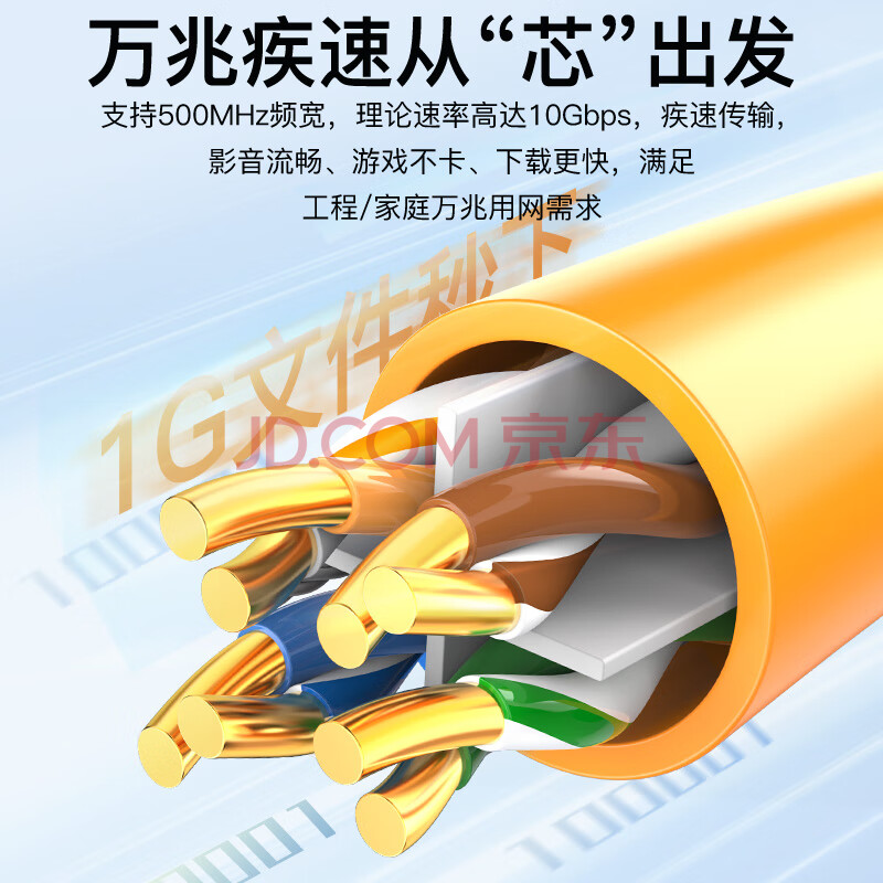商品相册:秋叶原(CHOSEAL)原装超六类非屏蔽网线 CAT6A类万兆高速 纯铜线芯 工程家装网络箱线 橙色 50米 QS2668CT50S第