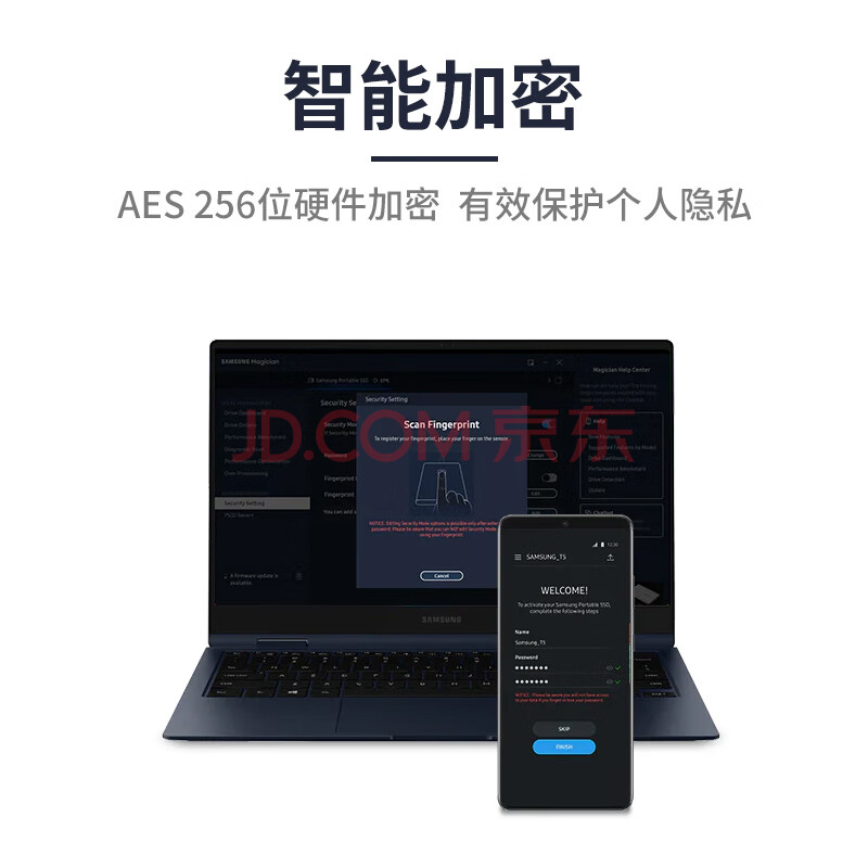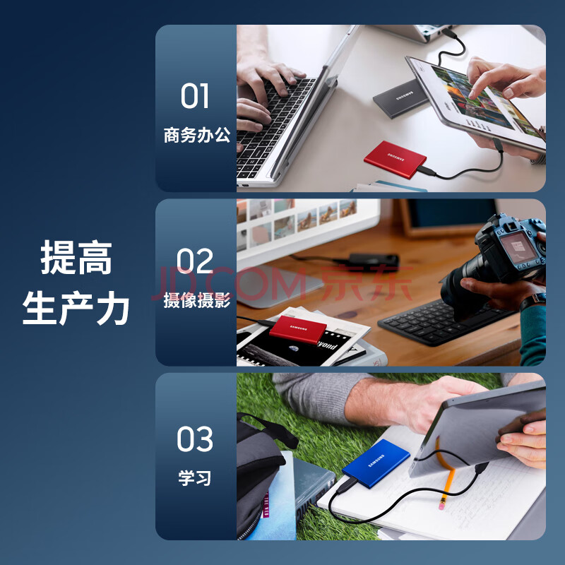 商品相册:三星(SAMSUNG)1TB Type-c USB 3.2 移动固态硬盘(PSSD) T7 灰色 NVMe读速1050MB/s 手机直连 Mac mini外接第