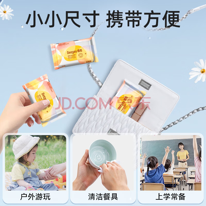 商品相册:德佑湿巾小包 婴儿手口屁屁专用 加厚10抽*20包 宝宝便携出行湿纸巾第